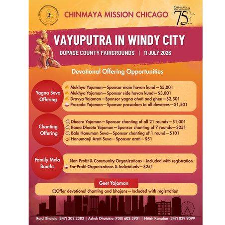 - Hanumanji Arati Seva-Sponsor arati: $51.00
